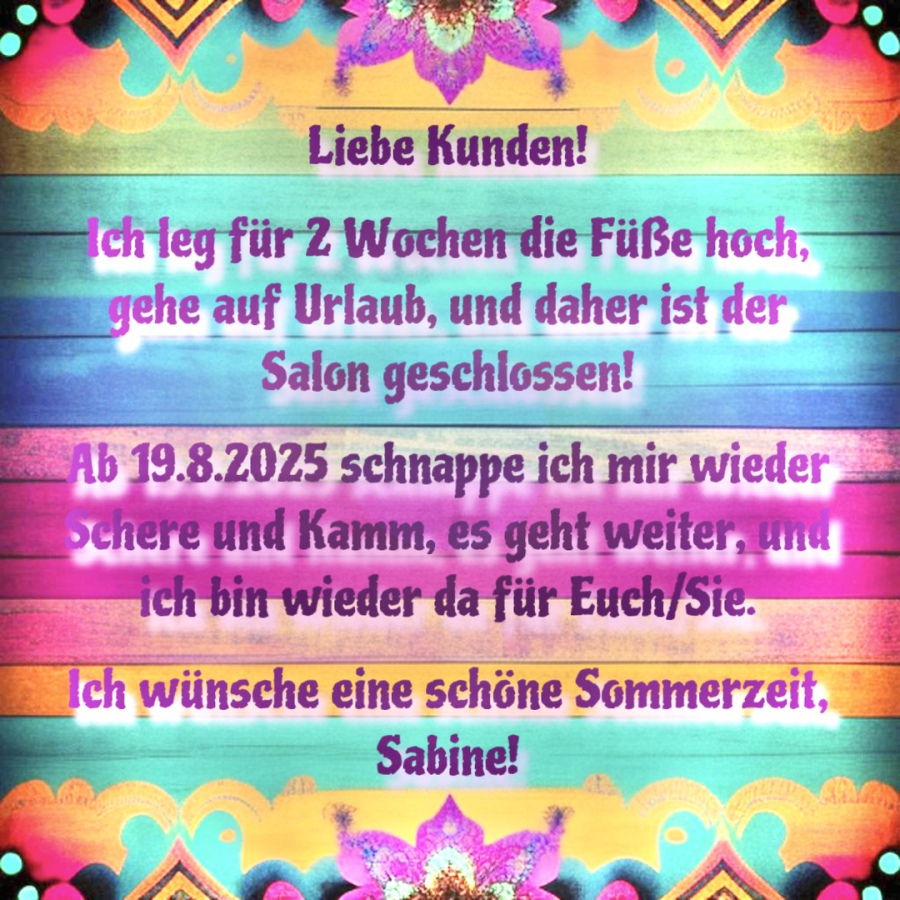 Um jeden meiner Kunden zufrieden und gut betreut durch diese Zeit zu bringen, bitte ich Sie rechtzeitig einen Termin zu vereinbaren damit die Wartezeit für Sie nicht zu lange dauert.